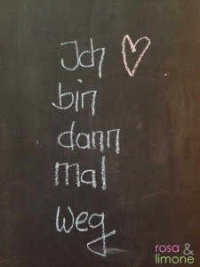 ich-bin-dann-mal-weg-rosa&limone 22. August Gepostet von rosa limone | 0 Kommentare | Kategorie: Twittern Schreibe einen Kommentar Antwort abbrechen Deine E-Mail-Adresse wird nicht veröffentlicht.Kommentar Name E-Mail Website Meinen Namen, meine E-Mail-Adresse und meine Website in diesem Browser für die nächste Kommentierung speichern.